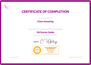 I have completed a number of CPD accredited, professional Virtual Assistant courses